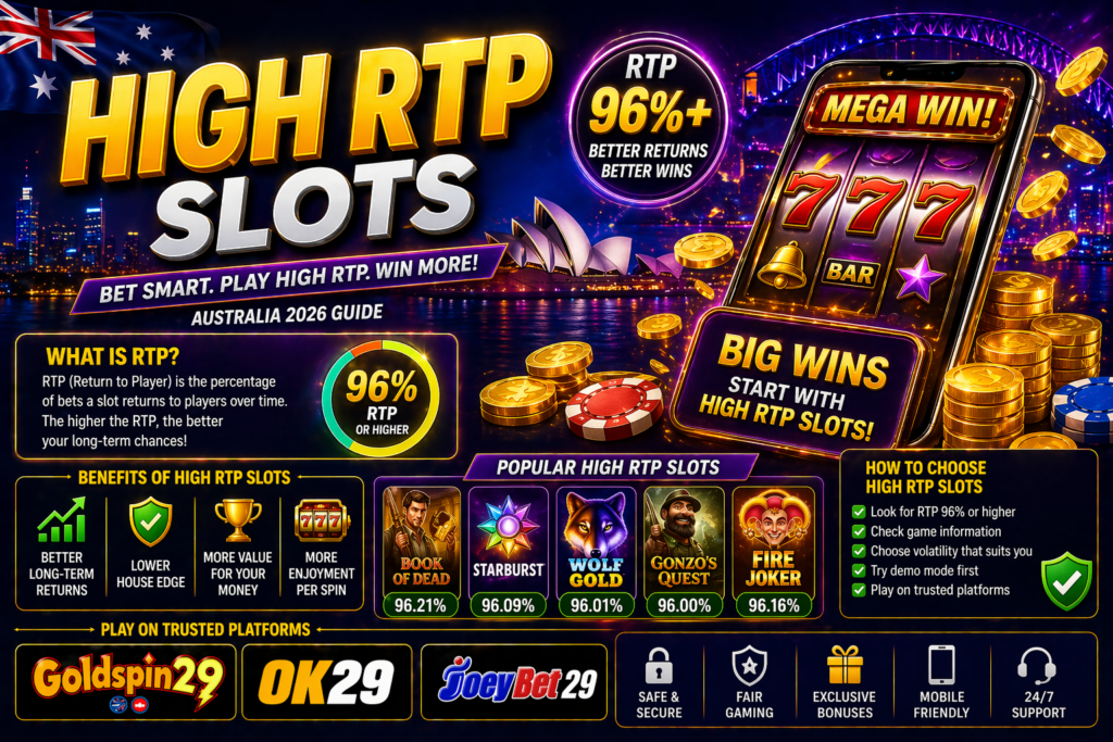 In this guide, we explain what high RTP slots are, how they work, and how Australian players access them through platforms like Goldspin29, OK29, and JoeyBet29.